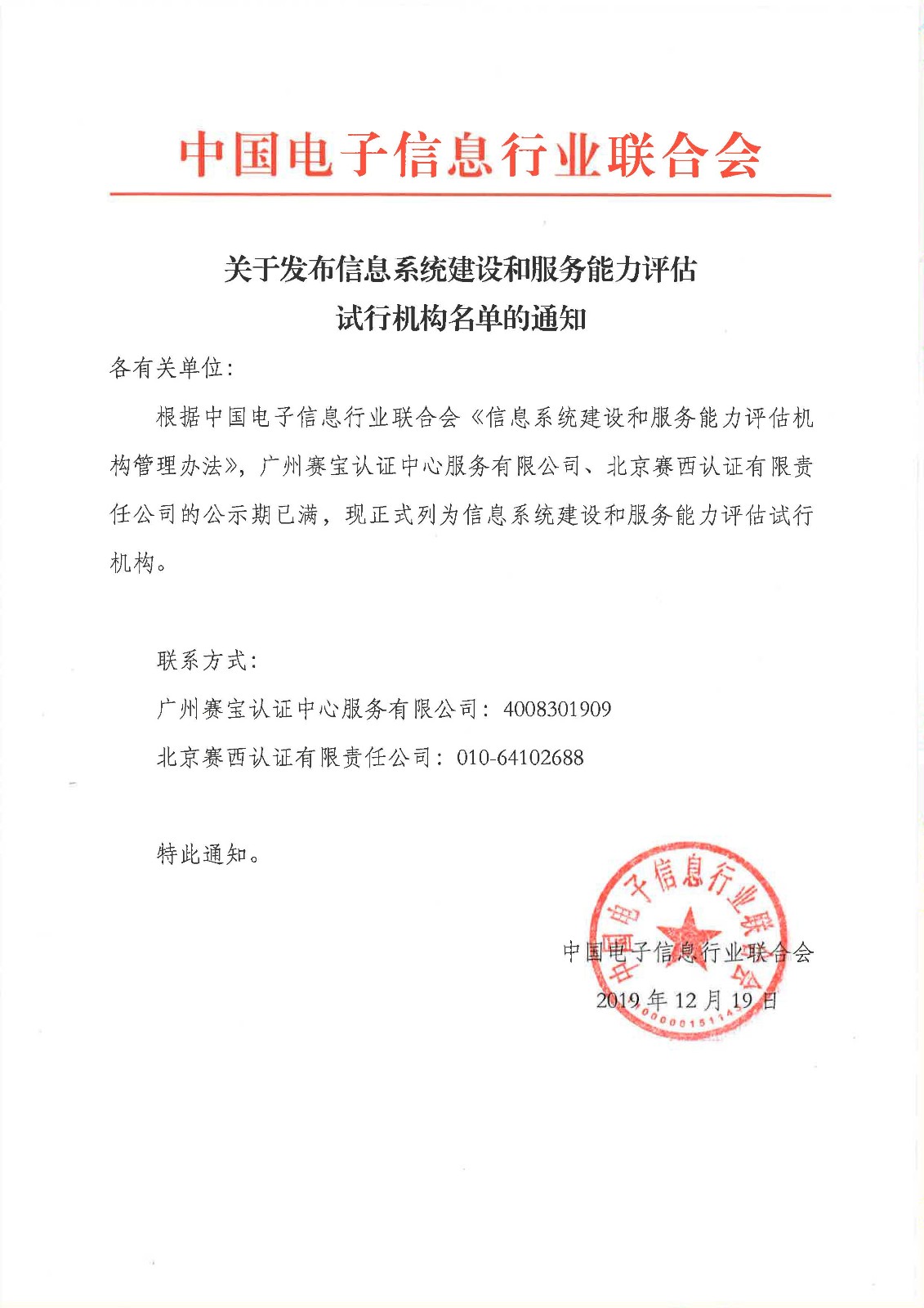 關(guān)于發(fā)布信息系統(tǒng)建設(shè)和服務(wù)能力評估試行機構(gòu)名單的通知 /Date23 12 月 2019/Posted By安信達咨詢/Categories系統(tǒng)集成資質(zhì) 相關(guān)文章: 安信達咨詢簽約珠海華發(fā)系統(tǒng)集成認證項目 系統(tǒng)集成資質(zhì)獲證企業(yè)名單、級別、有效期的查詢方法 信息系統(tǒng)集成資質(zhì)獲證后有什么注意事項? CS三級資質(zhì)要求和證書樣本 系統(tǒng)集成, 系統(tǒng)集成資質(zhì)